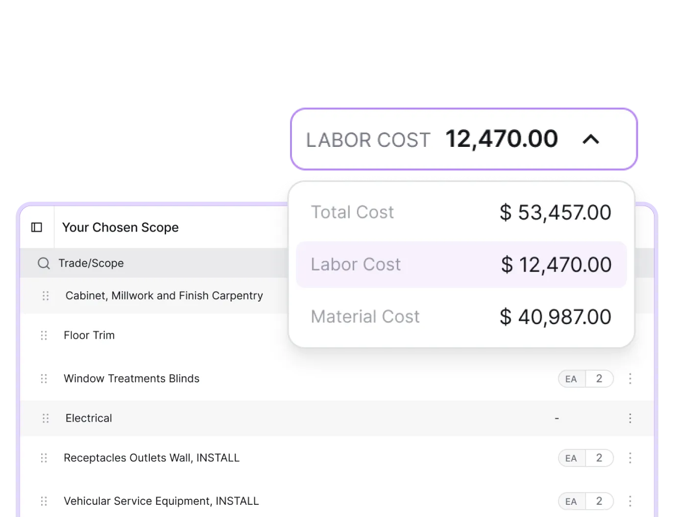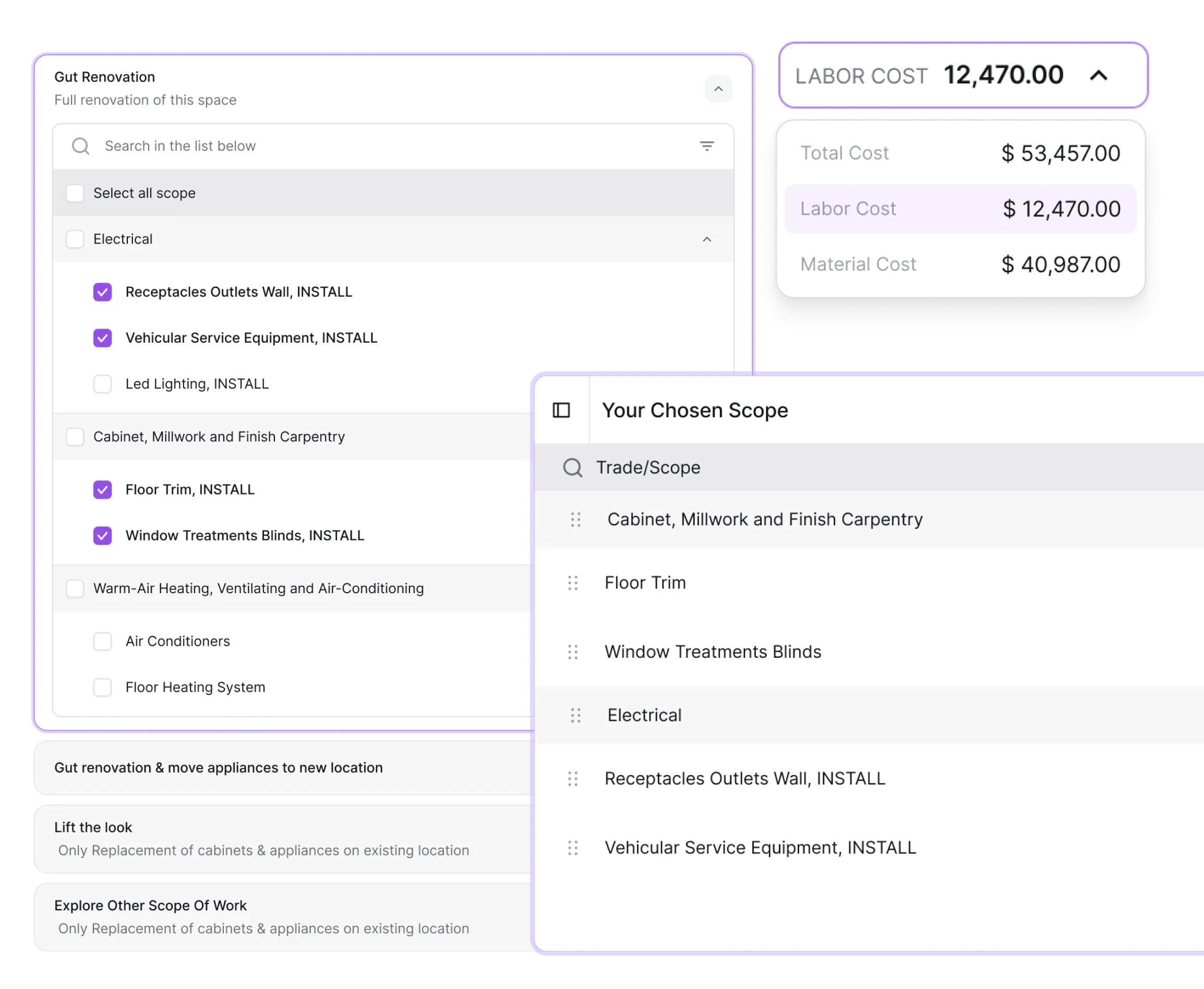 Ensure your design fits the budget from the start. Our tool helps you and your client have the cost estimation from conceptual design to detailed scope of work which will reduces surprises and costly redesigns.